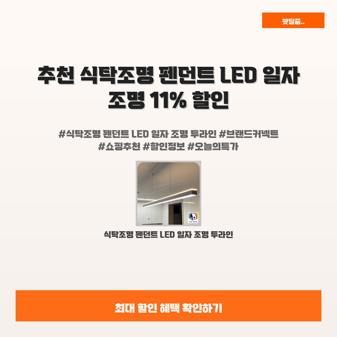 🛍️ 이 포스팅은 네이버 쇼핑 커넥트 활동의 일환으로,판매 발생 시 수수료를 제공받습니다.오늘 소개할 제품은 단언컨데,,그야말로 완벽한, 갓벽한, 감동적인 식탁조명 펜던트 LED 일자 조명 투라인입니다!식탁에 앉았을 때 조명의 분위기가 너무 중요하다는 거, 다들 아시죠?하지만 어떤 조명을 선택해야 할지 고민인 분들이 많으실 거예요.당신의 식탁에 딱 맞는 식탁조명 펜던트 LED 일자 조명 투라인이 있다면더 이상 고민할 필요가 없답니다!이 조명은 심플하면서도 세련된 디자인으로 어떤 인테리어와도 잘 어우러지며,최상의 조도 조절로 당신의 공간을 한층 더 빛나게 해줄 거예요.게다가 지금 단 80,000원에 만나볼 수 있는 이 기회를 놓치지 마세요!11% 할인된 가격으로, 품격을 더해줄 현명한 선택이 될 거예요!..